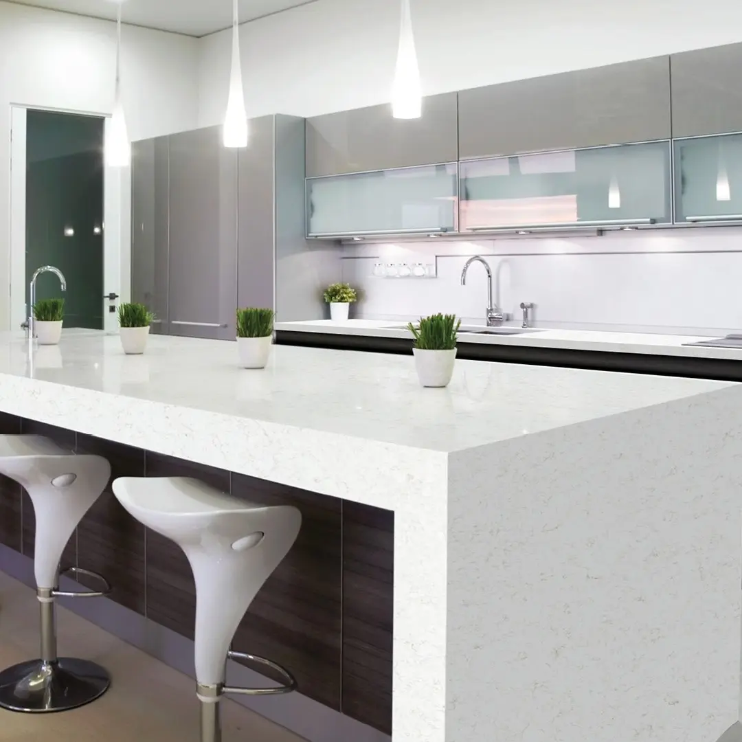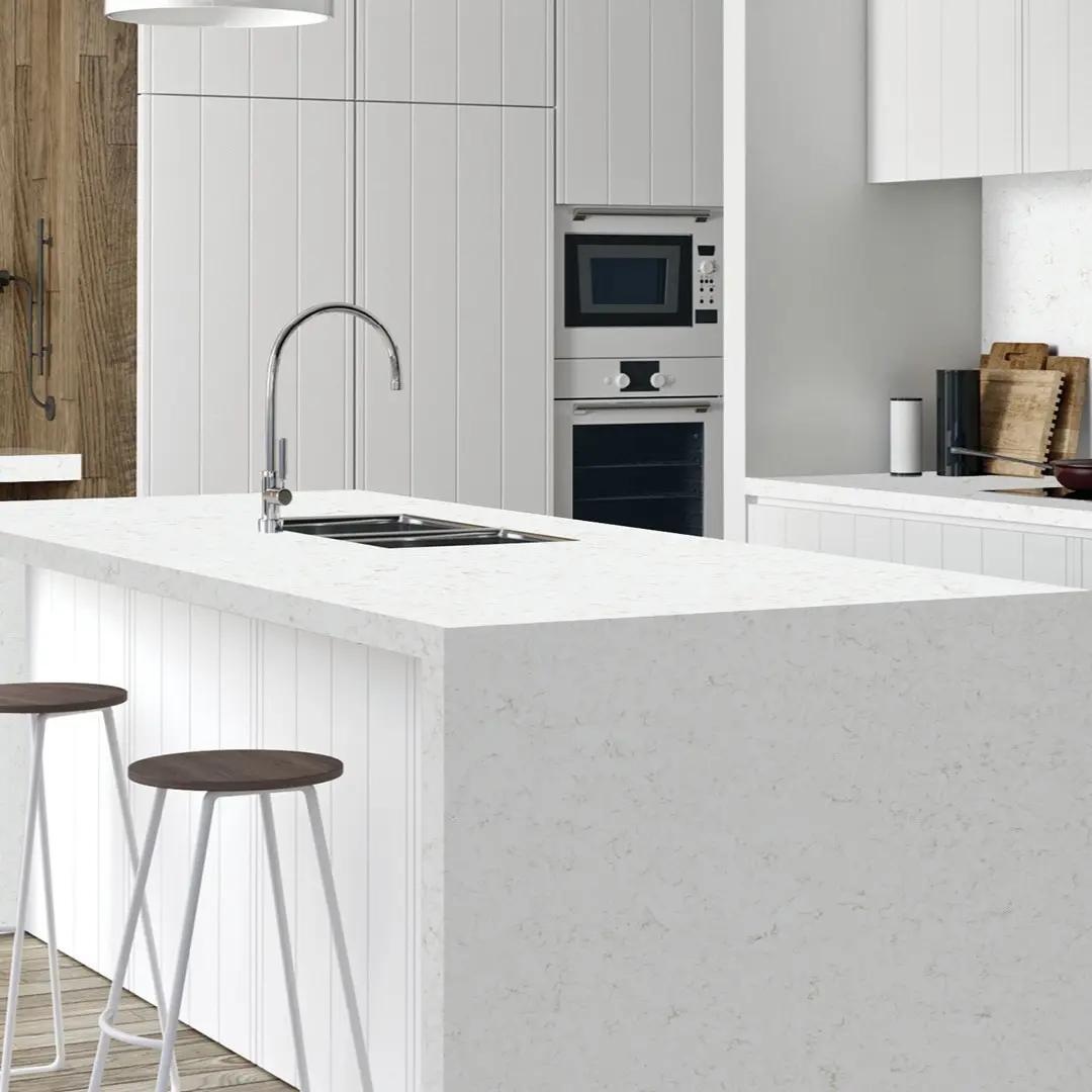 Blat bucătărie quartz Azur Quartz Avant alb light rezistent la pete și zgârieturi.