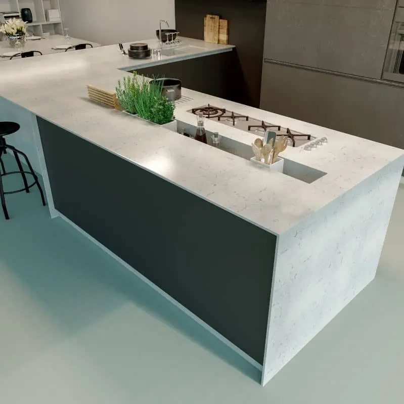 Blat de bucătărie premium realizat din Noble Areti Bianco Quartz Technistone